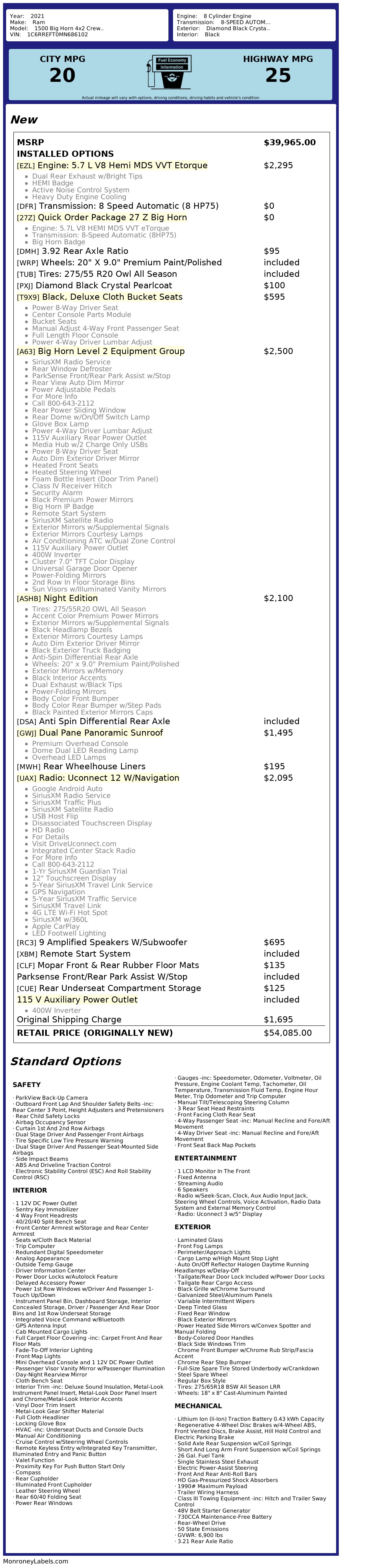 Step into this sleek and powerful Black 2021 RAM 1500, where every detail is designed to elevate your driving experience. Equipped with a 3.21 Rear Axle Ratio, this truck effortlessly combines efficiency and performance. With a GVWR of 6,900 lbs, this vehicle is ready to handle whatever you throw its way.