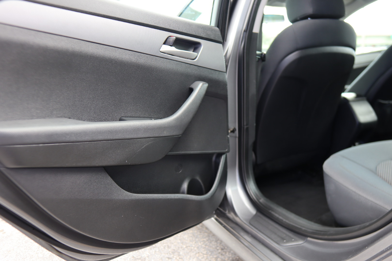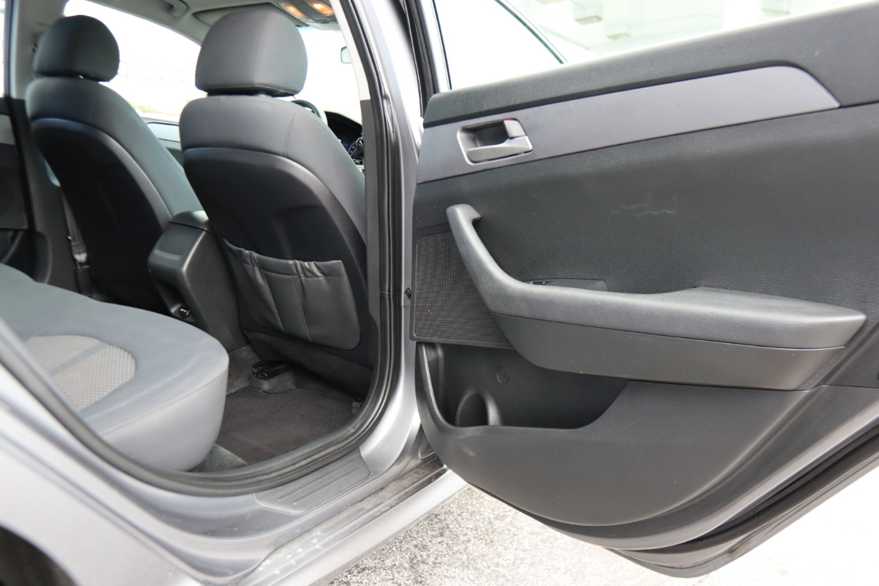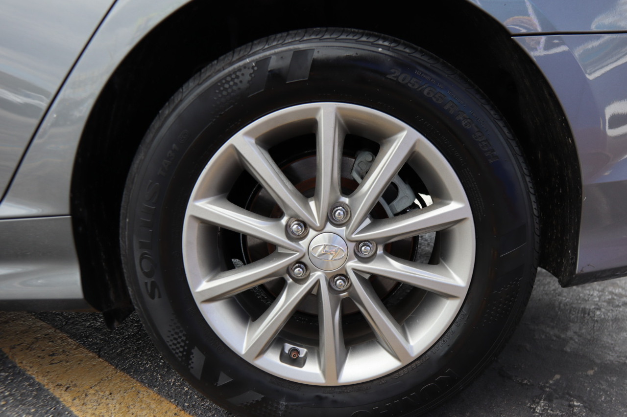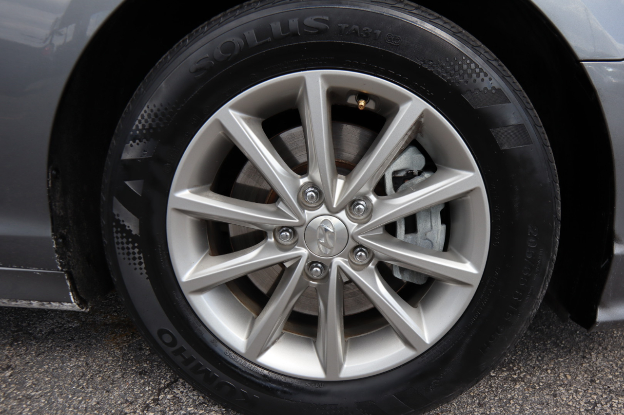 The exterior of this Sonata is finished in a timeless gray color, complemented by 16" aluminum alloy wheels and chrome accents that add a touch of elegance. The auto on/off projector beam halogen headlights ensure clear visibility day or night, while the chrome grille gives the front end a modern look.