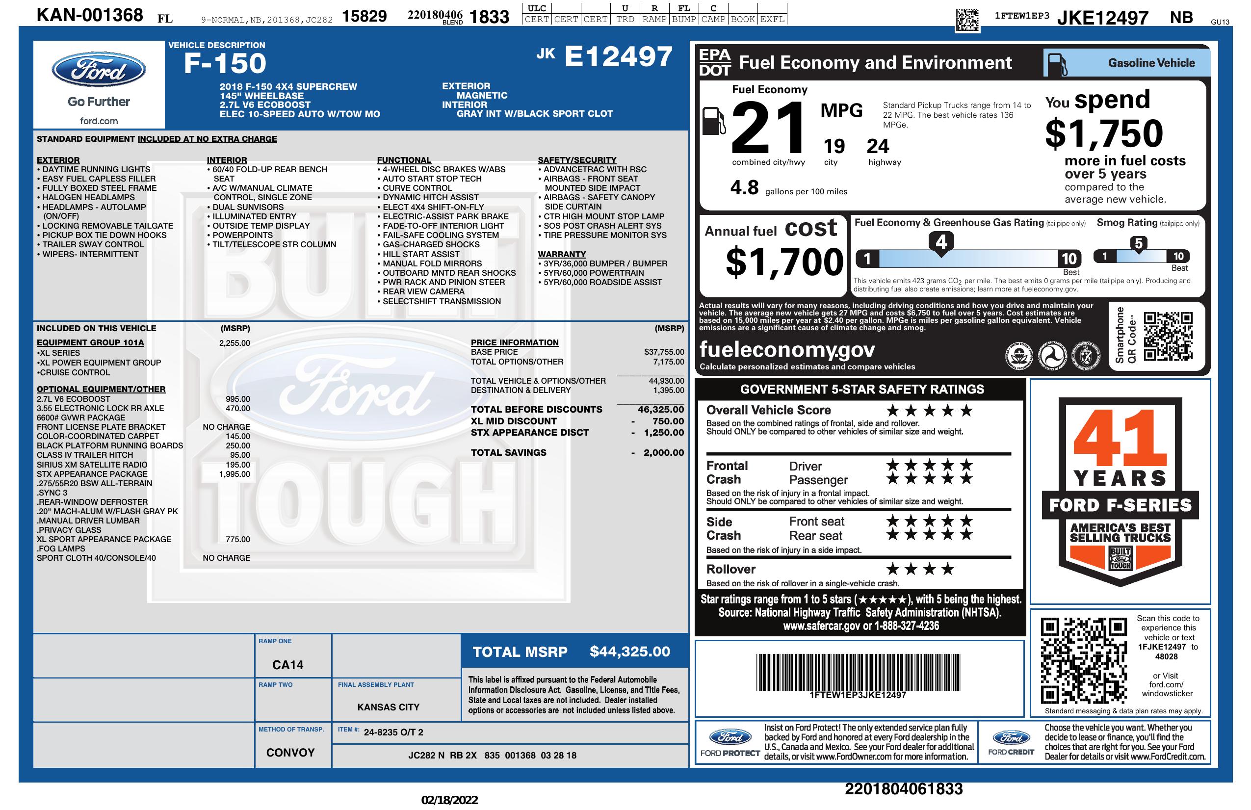 - ENGINE: 2.7L V6 ECOBOOST